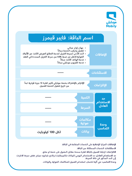 - سيقوم الفريق بتجهيز الراوتر والخدمات الأخرى في موقع مخصص لجميع خدمات موبايلي